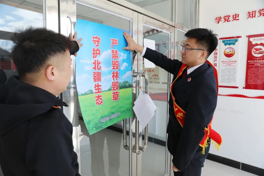 为深入贯彻落实自治区毁林毁草违规违法行为集中整治工作会议精神,严厉打击毁林毁草违法犯罪行为,4月27日,霍林郭勒市检察院针对重点区域和春耕时节这一关键节点,深入河日木特村开展“守护北疆生态 共筑安全屏障”为主题的双语普法宣传活动,结合“线上+线下”同步方式,增强群众保护生态的意识,以法治力量守护绿色家园。