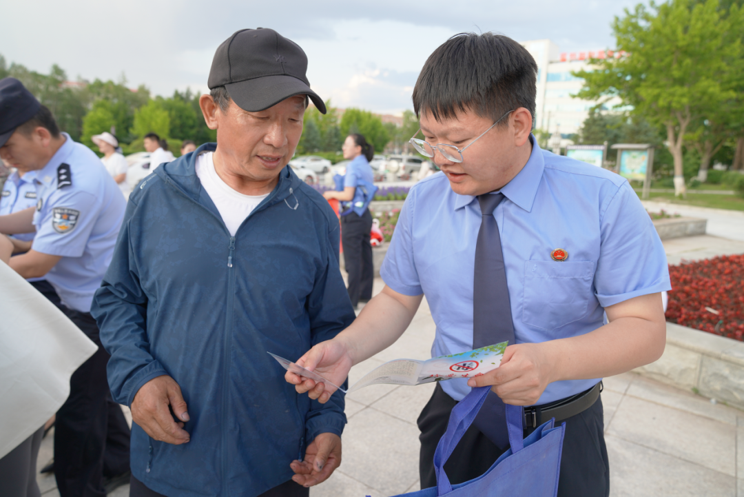 6月24日,霍林郭勒市检察院联合市人民法院、市公安局禁毒大队开展全民禁毒宣传月主题宣传活动。