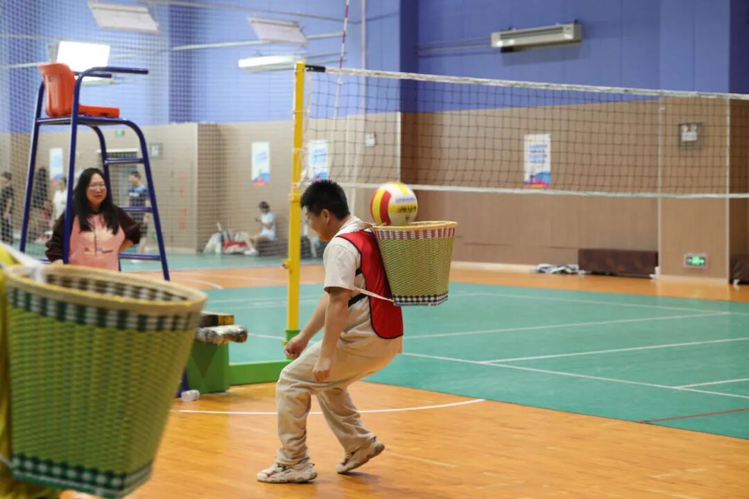 冲刺!奔跑!当脚步抵达终点的瞬间,手中的排球顺势弹向空中,身体微微前倾,“咚”的一声,排球稳稳落入篓中,欢呼声即刻响起!这不仅是速度与精准的较量,更是手眼协调与反应力的双重考验,每一次成功接球,都是满满的成就感与欢乐!