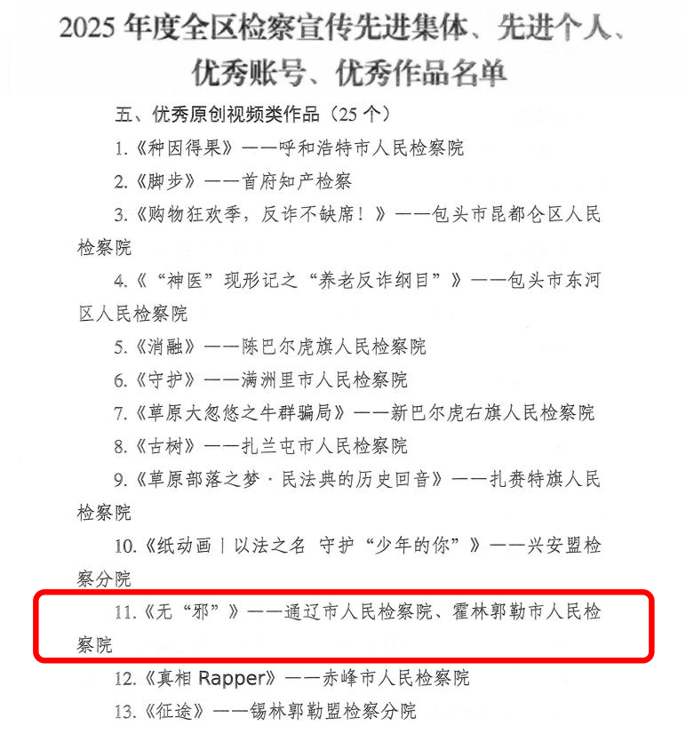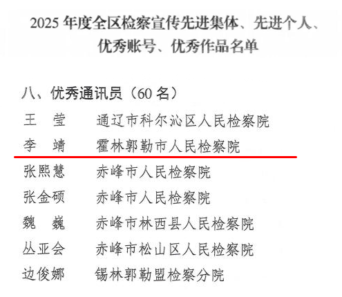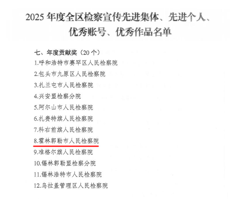 近日,为表彰先进典型,弘扬奋斗精神,自治区检察院对2025年度全区检察融媒体宣传工作先进典型予以通报表扬,霍林郭勒市检察院荣获三项荣誉~