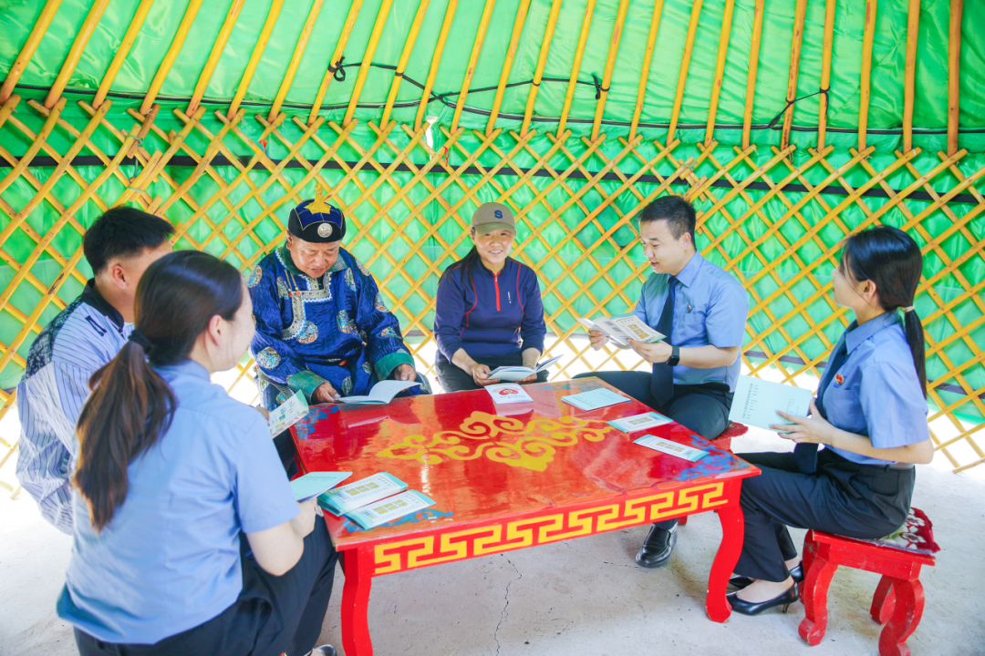 广袤无垠的草原上,牛羊成群、河湖交错,构成了我国北疆独特的生态画卷。牧区群众是草原生态的直接守护者,也是生物多样性保护的关键力量。检察机关以双语法治守护群众权益,充分发挥“法律+语言”专业优势,让生硬的法条转化为牧民听得懂、用得上的“生态指南”。
