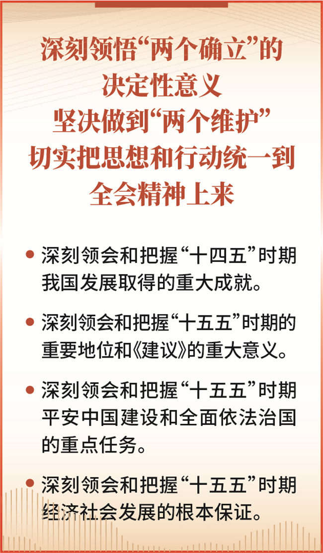 解读:党的二十届四中全会审议通过的《中共中央关于制定国民经济和社会发展第十五个五年规划的建议》(下称《建议》),着眼强国建设、民族复兴伟业,对未来五年发展作出顶层设计和战略擘画,是乘势而上、接续推进中国式现代化建设的又一次总动员、总部署。研讨班从深刻领会和把握“十四五”时期我国发展取得的重大成就、深刻领会和把握“十五五”时期的重要地位和《建议》的重大意义、深刻领会和把握“十五五”时期平安中国建设和全面依法治国的重点任务、深刻领会和把握“十五五”时期经济社会发展的根本保证四个方面提出明确要求。