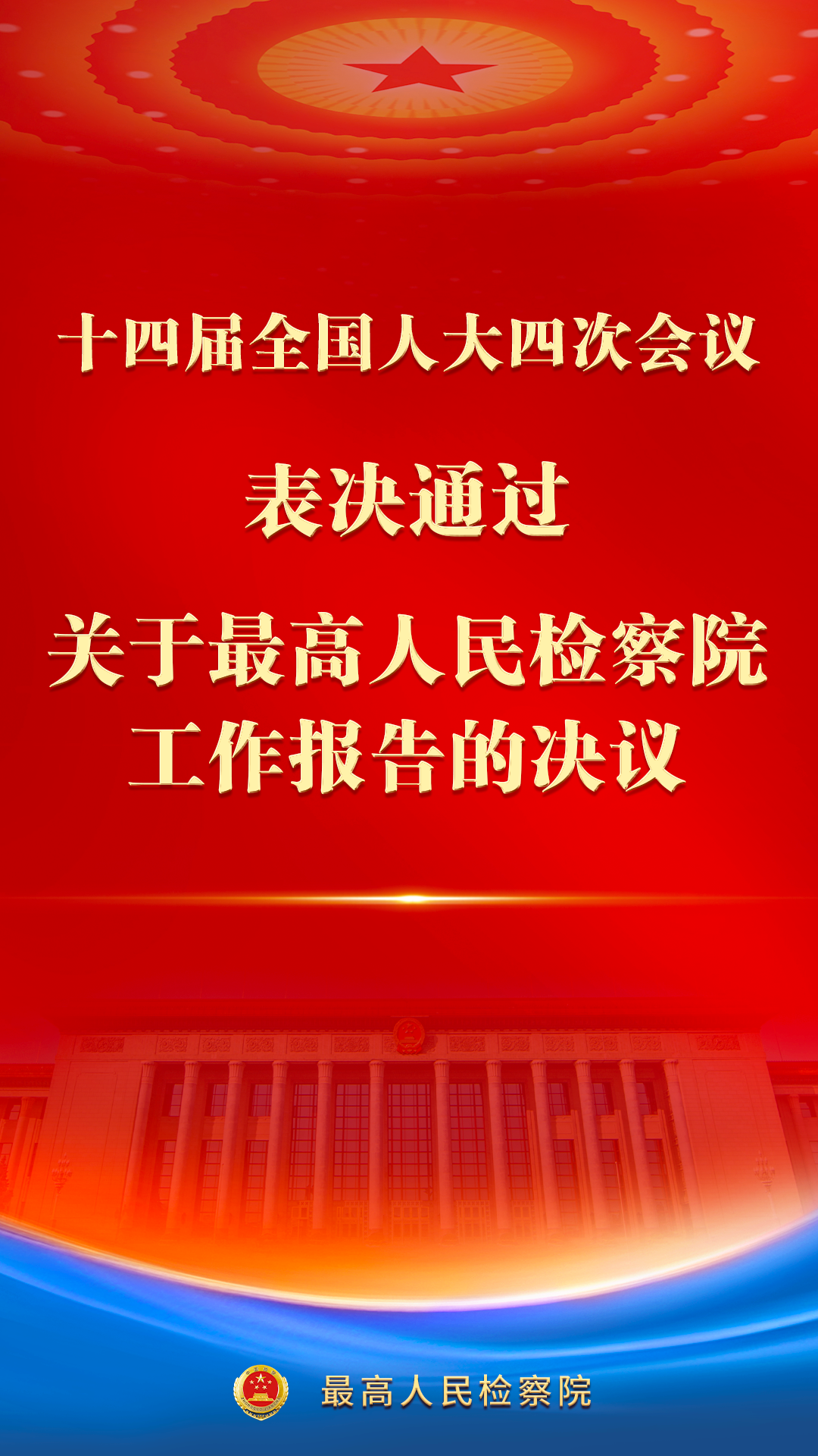 十四届全国人大四次会议表决通过了关于最高人民检察院工作报告的决议。