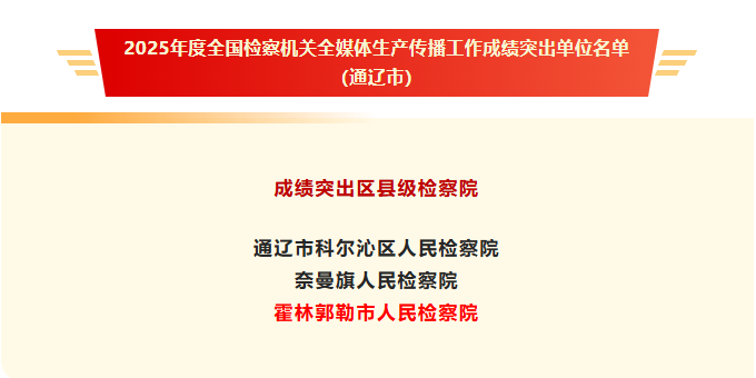 喜报丨霍林郭勒市检察院获评“2025年度全国检察机关全媒体生产传播工作成绩突出单位”